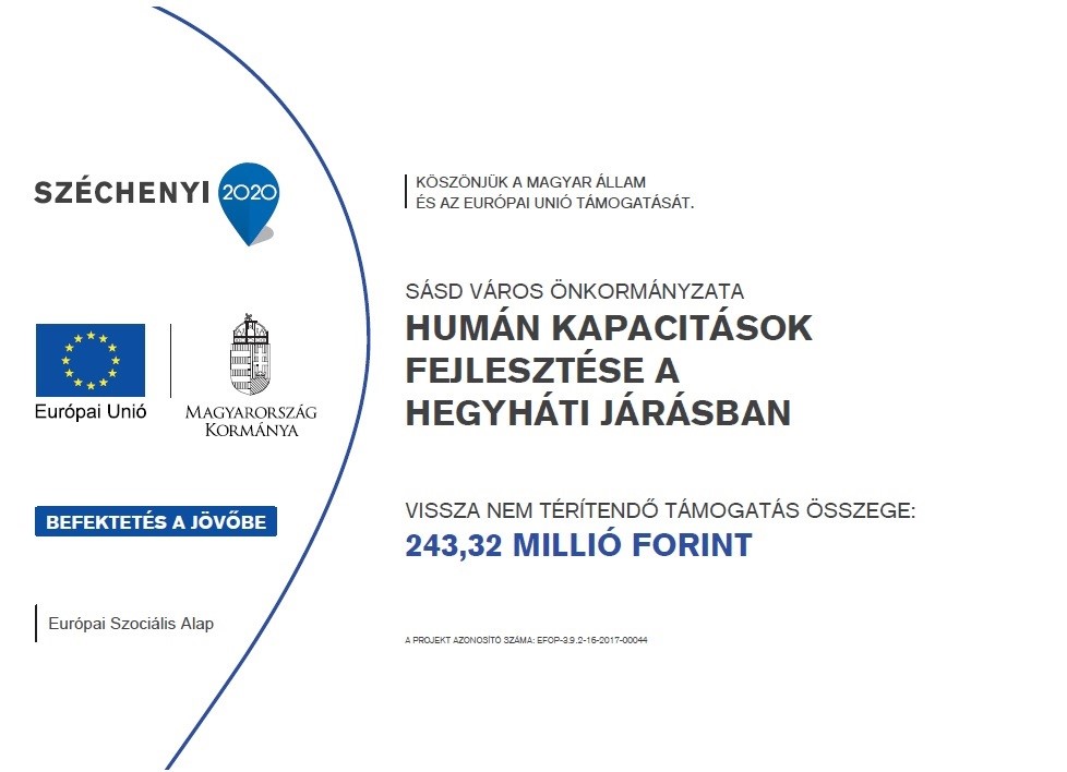 A "Humán kapacitások fejlesztése a Hegyháti járásban" című projekt alapvető célja a helyi együttműködésekben rejlő lehetőségek lehető legszélesebb kiaknázásával a Hegyháti járás hátrányos helyzetű térségének fejlesztése, valamint a helyi lakosság esélyegyenlőségének biztosítása. A 290/2014. (XI. 26.) Korm. rendelet szerint kedvezményezett Hegyháti járásban érintett 7 önkormányzat és a társulás konzorciumában valósul meg. A bevont települési önkormányzatok: Sásd Város Önkormányzata (közigazgatási területén lakóhellyel 3053 fő rendelkezik) Gödre Község Önkormányzata (közigazgatási területén lakóhellyel 844 fő rendelkezik) Meződ Község Önkormányzata (közigazgatási területén lakóhellyel 129 fő rendelkezik) Mindszentgodisa Község Önkormányzata (közigazgatási területén lakóhellyel 836 fő rendelkezik) Palé Község Önkormányzata (közigazgatási területén lakóhellyel 90 fő rendelkezik) Varga Község Önkormányzata (közigazgatási területén lakóhellyel 82 fő rendelkezik) Vázsnok Község Önkormányzata (közigazgatási területén lakóhellyel 139fő rendelkezik) Mindszentgodisai Oktatási és Szociális Étkeztetést Ellátó Társulás. A projekt által érintett települések bemutatásánál jól kirajzolódtak azok a problémák, amelyek a társadalmi esélyegyenlőség megvalósulásának legfontosabb gátjai. Különösen érzékeny csoport ebből a szempontból az óvodába és iskolába járó gyermekeké, így a projekt különös figyelmet fordít rájuk. A projekt legfőbb célja a területi különbségek és különösen a településméretből adódó társadalmi hátrányok komplex megközelítéssel történő, a helyi igényeken alapuló csökkentése a humán közszolgáltatások tekintetében, valamint a minőségi közszolgáltatásokhoz való hozzáférés javítása elsősorban a köznevelés, a felsőoktatás, a felnőttoktatás által biztosított informális és nem formális tanulás területén, a helyi tudástőke gyarapítása érdekében. A projekt szakmai tartalmának részét képezi a hátrányos helyzetű gyermekek támogatása ösztöndíj formájában, ezáltal segítve és motiválva a tanulmányi előmenetelüket, amely a legtöbb esetben az egyetlen kiugrási lehetőséget jelenti a kialakult és állandósulni látszó negatív helyzetből. Az óvodai képzés támogatása és fejlesztése szintén jelentékeny részét képezi a projekt szakmai tartalmának. Ide sorolható többek között az óvodapedagógusok szakmai továbbképzése, amely a helyi igényekre reagálva igyekszik színesíteni és hatékonyabbá tenni az intézményekben folyó képzést. A gyermekek esélyegyenlőségének javítását szolgálják a projekt óvodások megcélzó programjai is. Ezek közé a programok közé tartoznak a tehetségprogramok, egészségnapok, személyiségfejlesztő rendezvények és kompetencia-fejlesztő események is. Fontos szempont továbbá a gyermekek nevelésénél az intézmény dolgozói és a szülők közötti kapcsolat és együttműködés, amely elengedhetetlen a pozitív eredmények eléréséhez. Az óvodások mellett az iskolások érintő programok is helyet kaptak a projektben. Ennek képezi részét az eredi iskola, az ökotúra vagy a sportágválasztó, amely lehetőséget teremt az általános iskolai tanulók látásmódjának bővítésére. Emellett természetesen a diákok megfelelő jövőképének kialakítása és tanulmányi előmenetelük támogatása is kulcsfontosságú, így ehhez kapcsolódóan a tervek között szerepel a tehetséggondozás, az életpálya építés külső szereplők, minták bevonásával, valamint a pályaválasztási hét megszervezése is. Az esélyegyenlőség és a modern munkaerő piaci kihívásokra reagálva az iskolán kívüli nyelvtanulás ösztönzése és támogatása is figyelmet érdemel a térségben, amely a pozitív változások alapjául szolgálhat a közeljövőben. Az oktatásfejlesztésen túl megkerülhetetlen a helyi problémákra történő reflektálás. A foglalkoztatási helyzet, a munkanélküliség és a jövedelmi viszonyok tükrében fontos feladatnak tűnik a tudatos pénzügyi magatartás kialakítása a tanulókban akár már az általános iskolai tanulmányaik során, ezzel ugyanis nem csupán a jövőben, hanem a jelenben is segíthetik családjaik boldogulását. A projekt feladatainak ellátásához partnerként a KLIK Szigetvári Tankerületét, a Sásdi Család- és Gyermekjóléti Központot, a Sásdi Általános Művelődési Központot, a Pécs-Baranyai Kereskedelmi és Iparkamarát, valamint az Engedd, hogy segíthessünk" Alapítványt vonjuk be együttműködési megállapodást keretében.