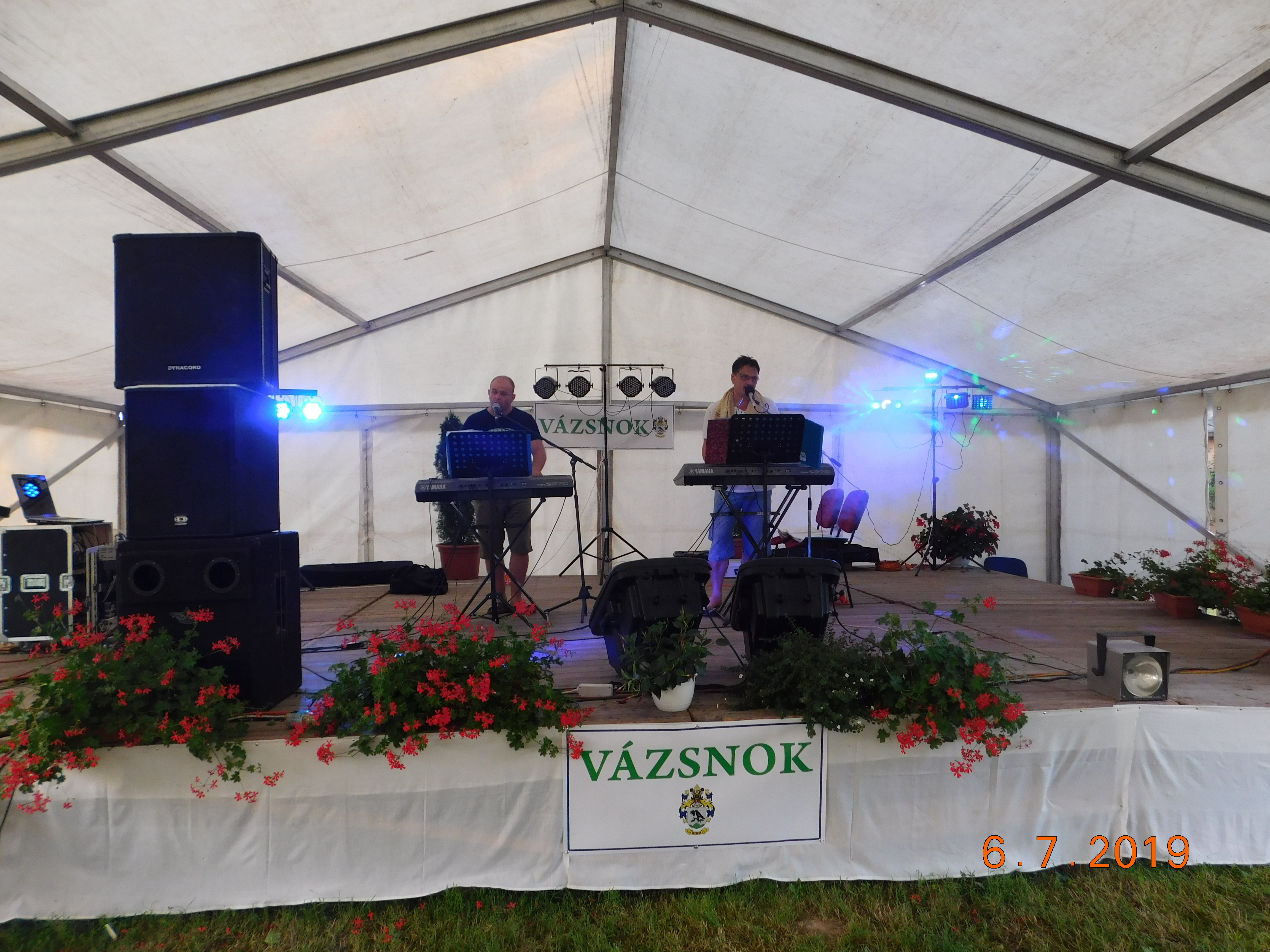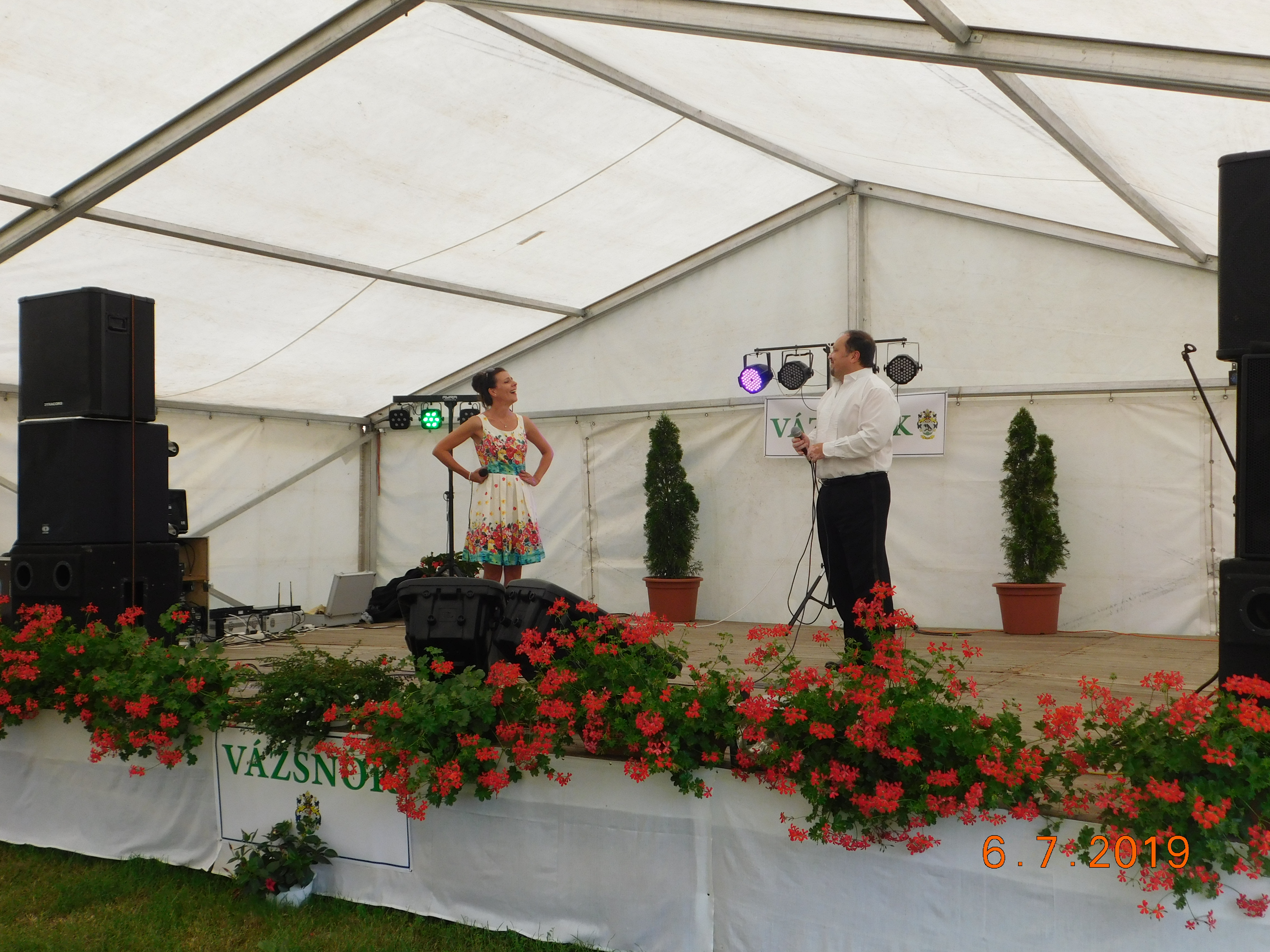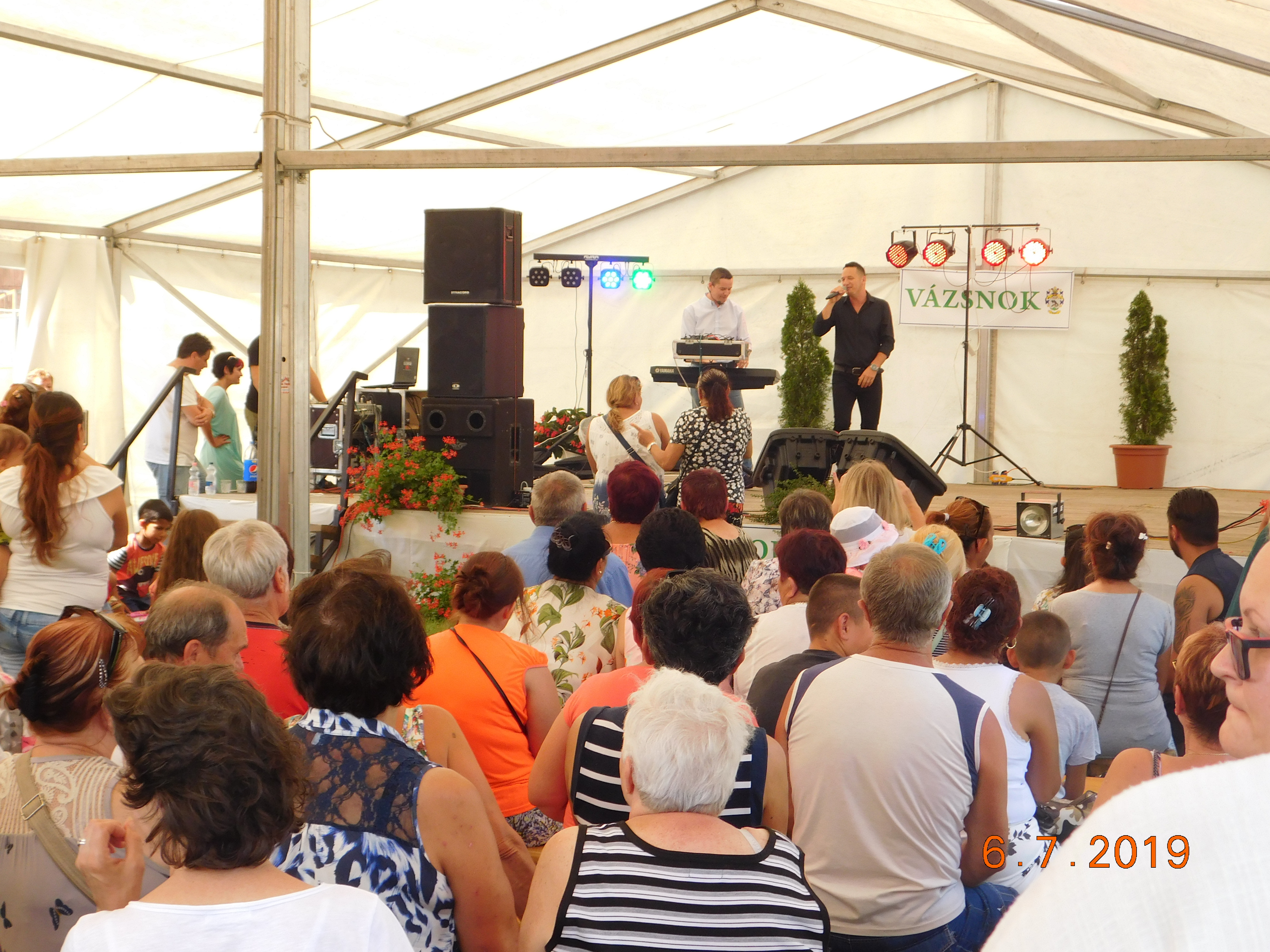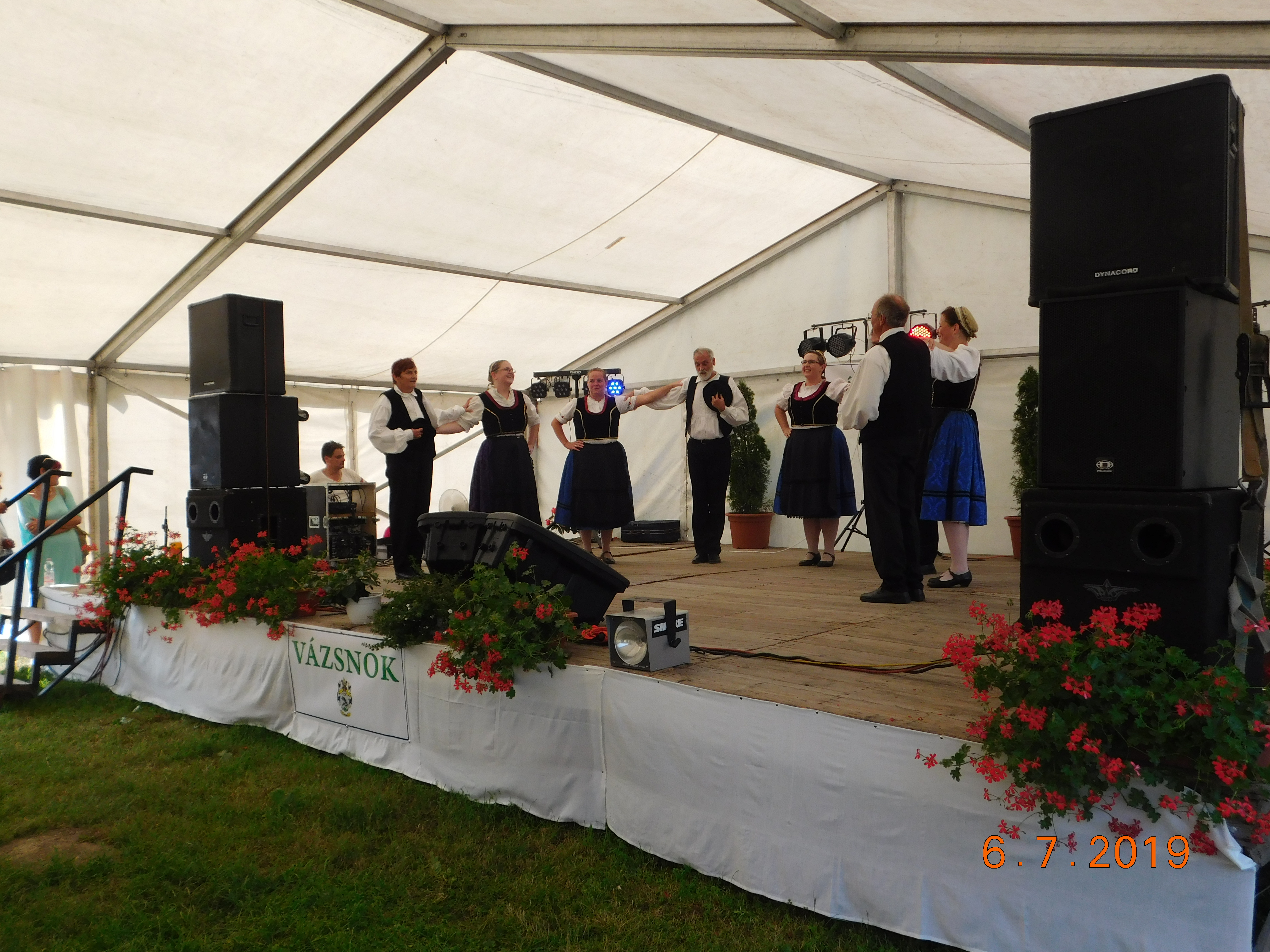 2019 július 6--n falunapot tartottunk Vázsnokon. A programok az alábbiak voltak: - Faodú Egyesület kreatív foglakoztatója - Vidámpark - 10.30 órától a Vígságtévők előadása zajlott - 11 órától Götz Attila és Stubendek Katalin operett összeállítását hallhattuk - 12 órától ebéd (töltött káposzta) - 13 órától Rostás Jenő Apát Plébános előadása Vázsnok múltjáról - 14 órától Khelipeske Rom roma táncegyesület előadása - 15 órától Tesók Zenekar - 16 órától Csikóstöttösi Sváb Tánccsoport - 17 órától Dankó Szilvia előadása - 19.30-tól utcabál Árki László, Bischoff Norbert Az egész napos rendezvényen büfé, valamint a gyerekeknek ingyen édesség állt rendelkezésre.