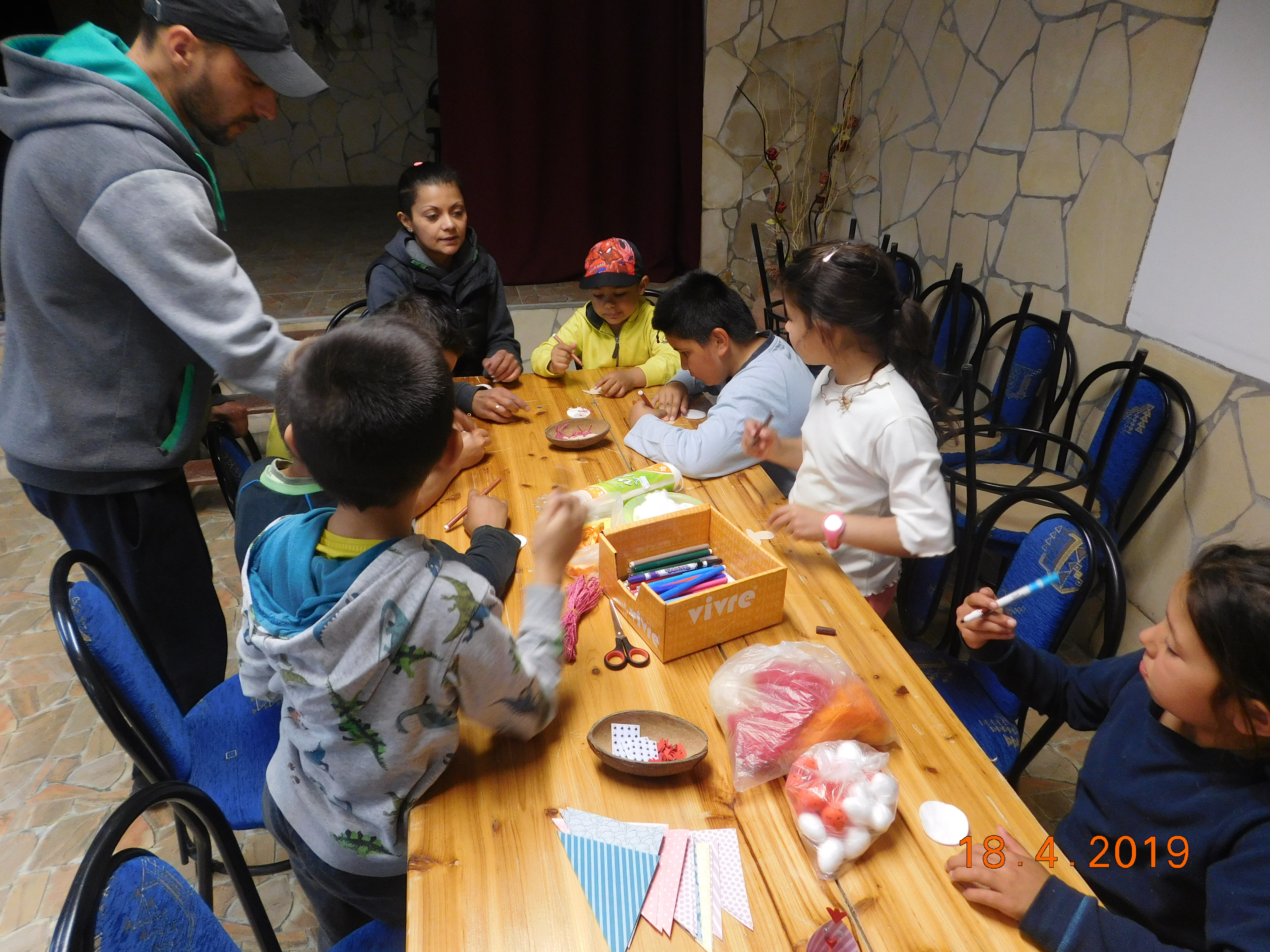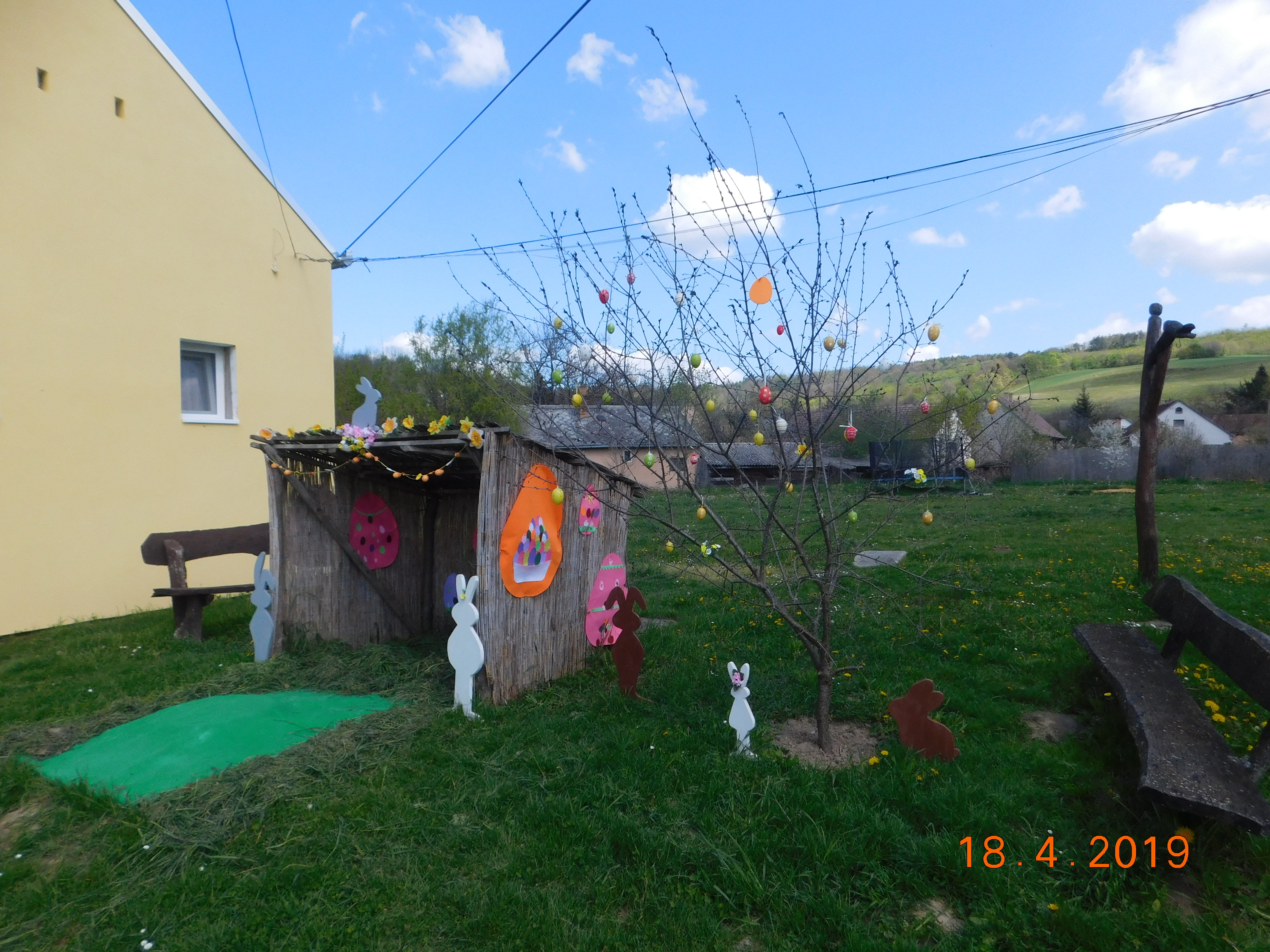 2019 április 18-án tartottuk a már szokásossá vált Húsvéti Ünnepséget. Az ünnepségen a gyerekek kreatívkodtak, volt tojásfestés, húsvéti bábukészítés és tojáskeresés a szabadban. A nyuszi az ajándékokat egy nagy fészekben helyezte, el, de mivel még sok helyre kellett mennie, ezért a kiosztást ránk bízta.